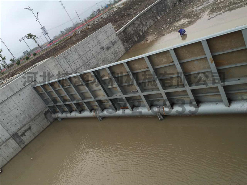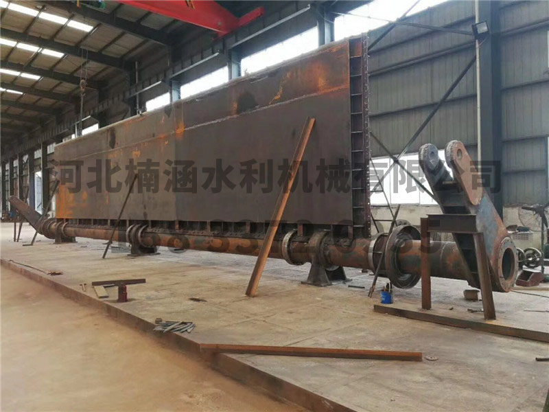 我廠生產的鋼壩是一種新型可調控溢流壩,它由土建結構、帶固定軸的鋼性壩體、驅動裝置設備等組成。這種建筑物適合于河道孔口較寬(10米~100米)而水位差比較小的工況(1~6米),由于它可以設計得比較寬,可以省去數(shù)孔閘墩,所以不僅結構簡單,可以節(jié)省不少土建投資,而且可以立壩蓄水,臥壩行洪排澇,還可以利用壩頂過水,形成人工瀑布的景觀效果。
