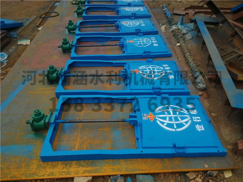 臺,安裝方便。小規(guī)格的采用整體鑄造,較大規(guī)格采用組裝式。訂貨時(shí)詳細(xì)注明閘門尺寸、